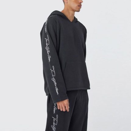 Oversized Raw Edge Script Embroidred Tracksuit